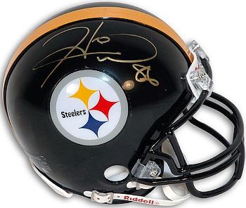 Hines Ward played for the Pittsburgh Steelers for 14 seasons after being drafted in the third round of the 1998 NFL Draft, becoming the team's all-time leader in receptions, receiving yardage and touchdown receptions. Ward was voted MVP of Super Bowl XL, and upon retirement was one of only eight NFL players to have 1,000 or more career receptions. He played college football at the University of Georgia. Hines Ward has hand signed this Pittsburgh Steelers Replica Mini Helmet #86 (gold sig). Certificate of Authenticity from Athlon Sports Collectibles.