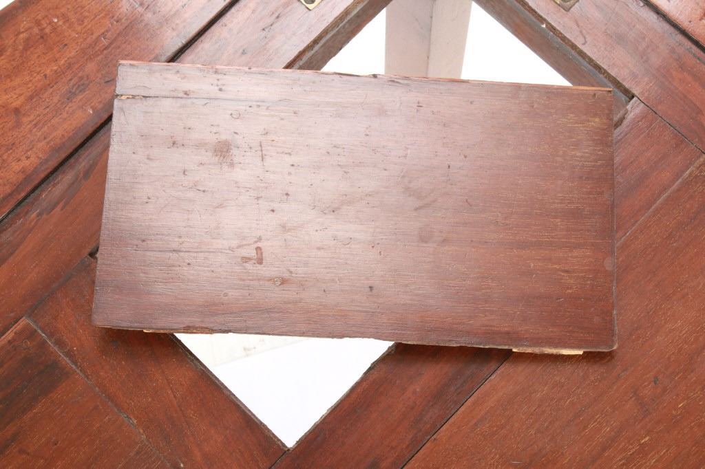 Featured in this lot is this hinged Butler's Tray Tea Table circa early 1900's. The table features a wonderfully and professionally crafted Butler Tray Tea Table design with four hinged handles that fold up and down and shows an inlaid four panel decoration to the face of the table. The condition of this hinged tea table is fair to good with one of the panels loose in setting and in fair to good overall condition. The measurements of this tea table are 34 1/2" x 18" x 26 1/4".