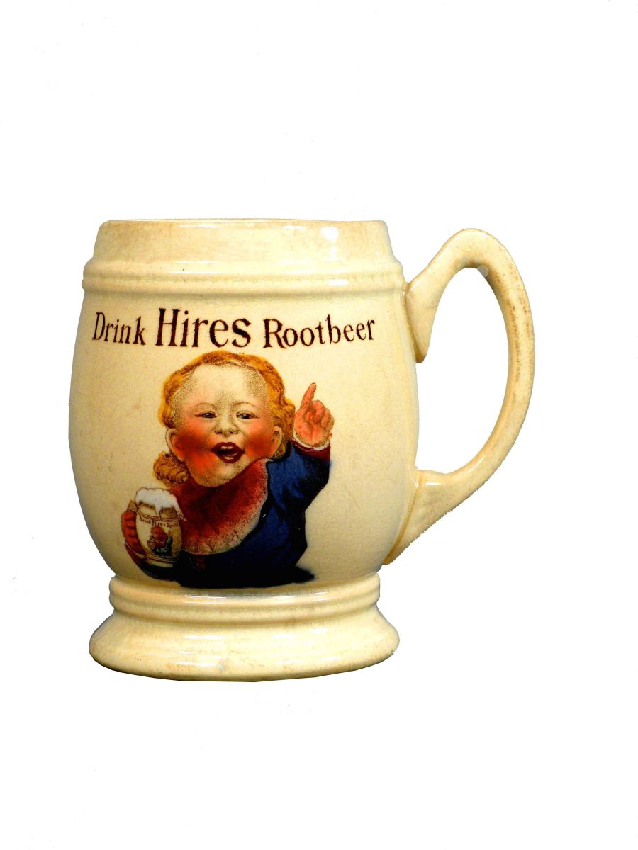 Hires Root Beer Mug, Mettlach. Made in Germany for the Charles E. Hires Company. No chips or cracks, excellent condition. 4 3/8 inches tall.
