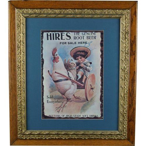 Hires Root Beer print in fancy oak frame - print is 19" x 22"
