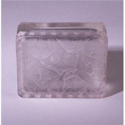 "Hirondelles," a LALIQUE cigarette box, circa 1923, in clear and frosted glass. M p 222, no. 53. 10cm length