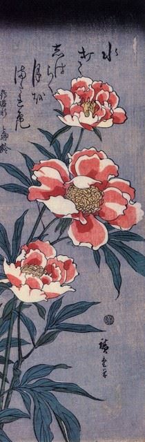 Artist: Utagawa Hiroshige - Title: Peonies - Medium: Fine Art Giclee on Canvas - Image Size: Approximately 32 inches x 10.5 inches - Unframed on Unstretched Canvas - Biography: (1797 - 12 October 1858) Hiroshige 's print s convey the beauty of Japan and provide insight into the everyday life of its citizens during the Edo period. The appeal of his tender, lyrical landscapes was not restricted to the Japanese audience.Hiroshige 's work had a profound influence on the Impressionists and Post-Impressionists of Europe: Toulouse-Lautrec was fascinated withHiroshige 's daring diagonal compositions and inventive use of perspective, while Van Gogh literally copied two ofHiroshig's prints from the famous series, 100 Famous Views of Edo in oil paint. - The borders may not be even inHiroshig's images. Please refer to the image.