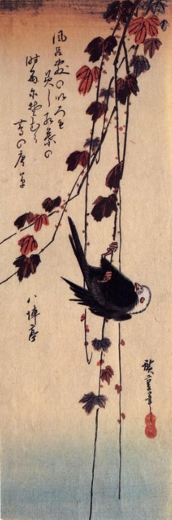 Artist: Utagawa Hiroshige - Title: A Small Black Bird Hanging on Ivy - Medium: Fine Art Giclee on Canvas - Image Size: Approximately 20 inches x 6.5 inches - Unframed on Unstretched Canvas - Biography: (1797 - 12 October 1858) Hiroshige 's print s convey the beauty of Japan and provide insight into the everyday life of its citizens during the Edo period. The appeal of his tender, lyrical landscapes was not restricted to the Japanese audience.Hiroshige 's work had a profound influence on the Impressionists and Post-Impressionists of Europe: Toulouse-Lautrec was fascinated withHiroshige 's daring diagonal compositions and inventive use of perspective, while Van Gogh literally copied two ofHiroshig's prints from the famous series, 100 Famous Views of Edo in oil paint. - The borders may not be even inHiroshig's images. Please refer to the image.
