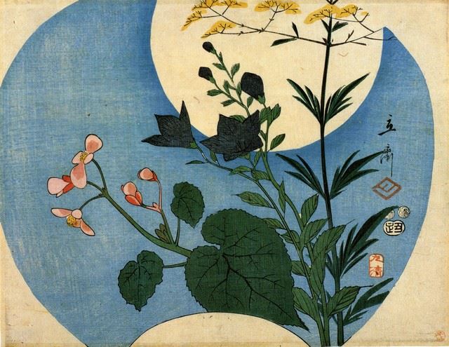 Artist: Utagawa Hiroshige - Title: Autumn Flowers with Full Moon - Medium: Fine Art Giclee on Canvas - Image Size: Approximately 15.5 inches x 20 inches - Unframed on Unstretched Canvas - Biography: (1797 - 12 October 1858) Hiroshige 's print s convey the beauty of Japan and provide insight into the everyday life of its citizens during the Edo period. The appeal of his tender, lyrical landscapes was not restricted to the Japanese audience.Hiroshige 's work had a profound influence on the Impressionists and Post-Impressionists of Europe: Toulouse-Lautrec was fascinated withHiroshige 's daring diagonal compositions and inventive use of perspective, while Van Gogh literally copied two ofHiroshig's prints from the famous series, 100 Famous Views of Edo in oil paint. - The borders may not be even inHiroshig's images. Please refer to the image.
