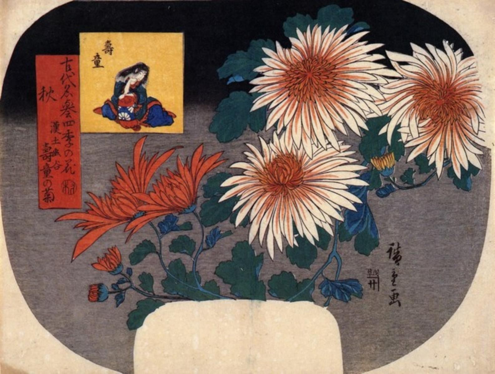 Artist: Utagawa Hiroshige - Title: Autumn - Medium: Fine Art Giclee on Canvas - Image Size: Approximately 24.25 inches x 32 inches - Unframed on Unstretched Canvas - Biography: (1797 - 12 October 1858) Hiroshige 's print s convey the beauty of Japan and provide insight into the everyday life of its citizens during the Edo period. The appeal of his tender, lyrical landscapes was not restricted to the Japanese audience.Hiroshige 's work had a profound influence on the Impressionists and Post-Impressionists of Europe: Toulouse-Lautrec was fascinated withHiroshige 's daring diagonal compositions and inventive use of perspective, while Van Gogh literally copied two ofHiroshig's prints from the famous series, 100 Famous Views of Edo in oil paint. - The borders may not be even inHiroshig's images. Please refer to the image.