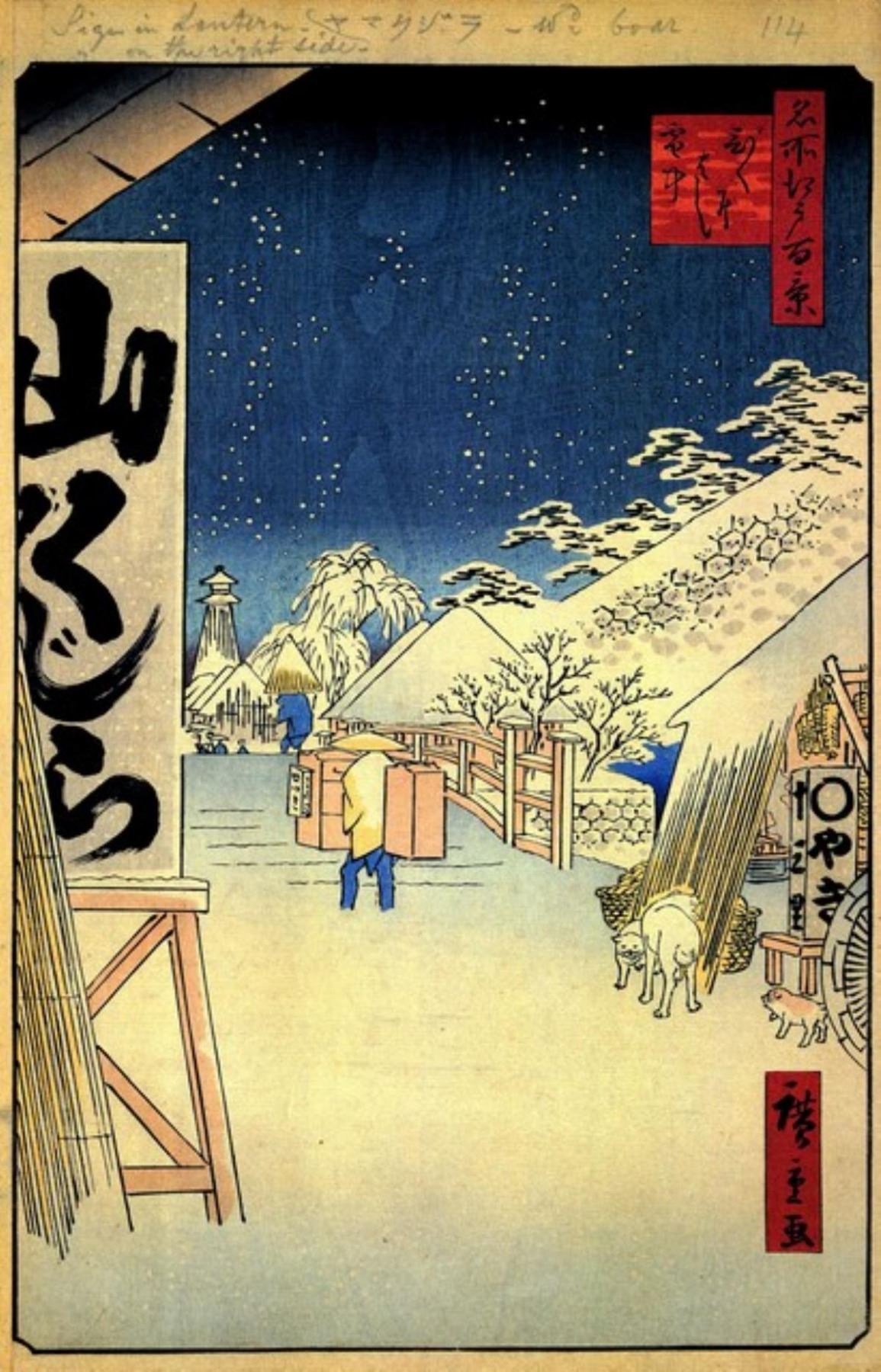 Artist: Utagawa Hiroshige - Title: Bikuni Bridge in Snow - Medium: Fine Art Giclee on Canvas - Image Size: Approximately 20 inches x 20.75 inches - Unframed on Unstretched Canvas - Biography: (1797 - 12 October 1858) Hiroshige 's print s convey the beauty of Japan and provide insight into the everyday life of its citizens during the Edo period. The appeal of his tender, lyrical landscapes was not restricted to the Japanese audience.Hiroshige 's work had a profound influence on the Impressionists and Post-Impressionists of Europe: Toulouse-Lautrec was fascinated withHiroshige 's daring diagonal compositions and inventive use of perspective, while Van Gogh literally copied two ofHiroshig's prints from the famous series, 100 Famous Views of Edo in oil paint. - The borders may not be even inHiroshig's images. Please refer to the image.