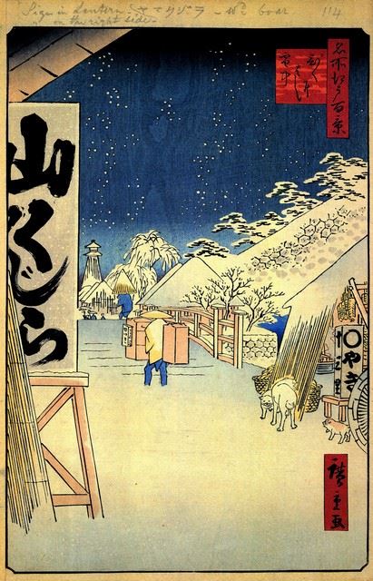 Artist: Utagawa Hiroshige - Title: Bikuni Bridge in Snow - Medium: Fine Art Giclee on Canvas - Image Size: Approximately 20 inches x 20.75 inches - Unframed on Unstretched Canvas - Biography: (1797 - 12 October 1858) Hiroshige 's print s convey the beauty of Japan and provide insight into the everyday life of its citizens during the Edo period. The appeal of his tender, lyrical landscapes was not restricted to the Japanese audience.Hiroshige 's work had a profound influence on the Impressionists and Post-Impressionists of Europe: Toulouse-Lautrec was fascinated withHiroshige 's daring diagonal compositions and inventive use of perspective, while Van Gogh literally copied two ofHiroshig's prints from the famous series, 100 Famous Views of Edo in oil paint. - The borders may not be even inHiroshig's images. Please refer to the image.