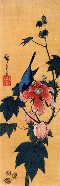 Artist: Utagawa Hiroshige - Title: Bird on a Hibiscus Flower - Medium: Fine Art Giclee on Canvas - Image Size: Approximately 32 inches x 10.5 inches - Unframed on Unstretched Canvas - Biography: (1797 - 12 October 1858) Hiroshige 's print s convey the beauty of Japan and provide insight into the everyday life of its citizens during the Edo period. The appeal of his tender, lyrical landscapes was not restricted to the Japanese audience.Hiroshige 's work had a profound influence on the Impressionists and Post-Impressionists of Europe: Toulouse-Lautrec was fascinated withHiroshige 's daring diagonal compositions and inventive use of perspective, while Van Gogh literally copied two ofHiroshig's prints from the famous series, 100 Famous Views of Edo in oil paint. - The borders may not be even inHiroshig's images. Please refer to the image.