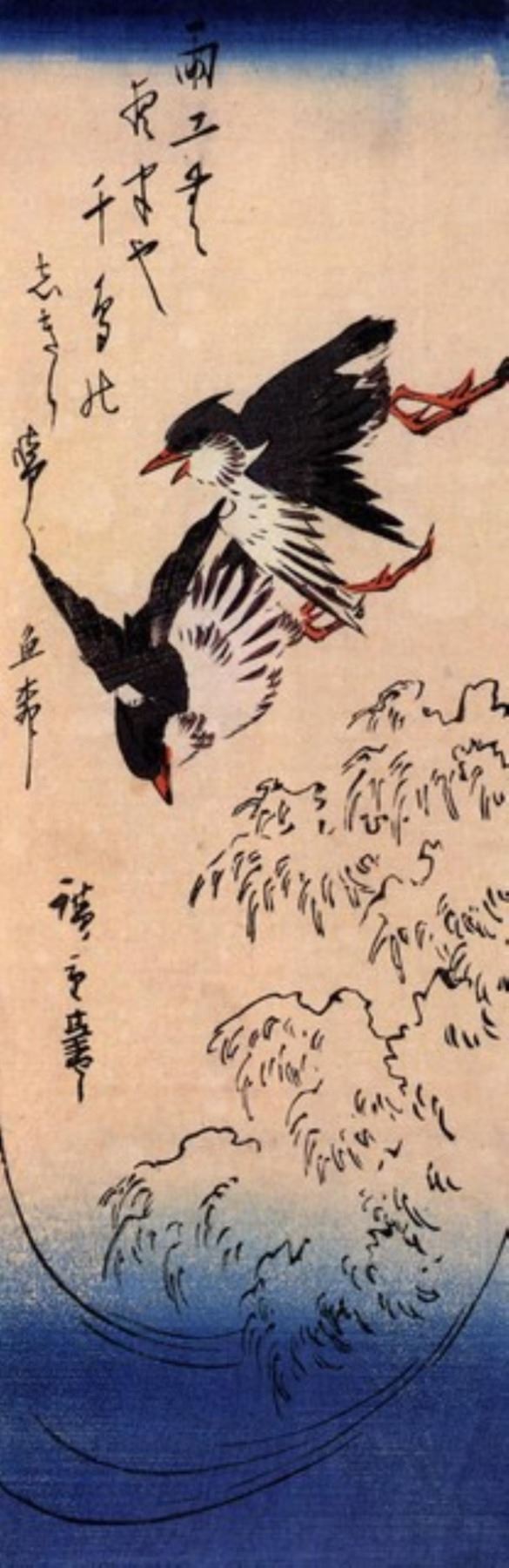 Artist: Utagawa Hiroshige - Title: Birds over Waves - Medium: Fine Art Giclee on Canvas - Image Size: Approximately 32 inches x 10.25 inches - Unframed on Unstretched Canvas - Biography: (1797 - 12 October 1858) Hiroshige 's print s convey the beauty of Japan and provide insight into the everyday life of its citizens during the Edo period. The appeal of his tender, lyrical landscapes was not restricted to the Japanese audience.Hiroshige 's work had a profound influence on the Impressionists and Post-Impressionists of Europe: Toulouse-Lautrec was fascinated withHiroshige 's daring diagonal compositions and inventive use of perspective, while Van Gogh literally copied two ofHiroshig's prints from the famous series, 100 Famous Views of Edo in oil paint. - The borders may not be even inHiroshig's images. Please refer to the image.