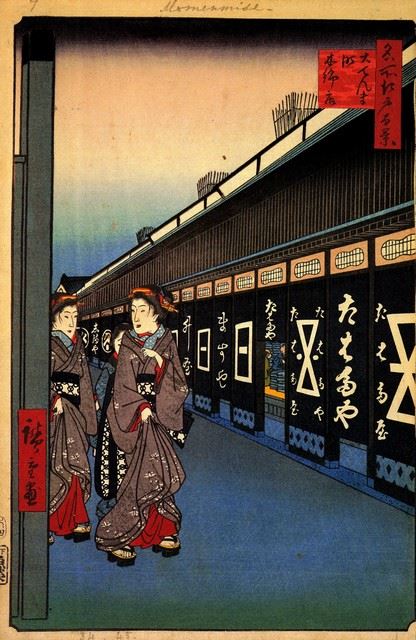 Artist: Utagawa Hiroshige - Title: Cotton-Goods Lane - Medium: Fine Art Giclee on Canvas - Image Size: Approximately 32 inches x 20.5 inches - Unframed on Unstretched Canvas - Biography: (1797 - 12 October 1858) Hiroshige 's prints convey the beauty of Japan and provide insight into the everyday life of its citizens during the Edo period. The appeal of his tender, lyrical landscapes was not restricted to the Japanese audience.Hiroshige 's work had a profound influence on the Impressionists and Post-Impressionists of Europe: Toulouse-Lautrec was fascinated withHiroshige 's daring diagonal compositions and inventive use of perspective, while Van Gogh literally copied two ofHiroshig's prints from the famous series, 100 Famous Views of Edo in oil paint. - The borders may not be even inHiroshig's images. Please refer to the image.