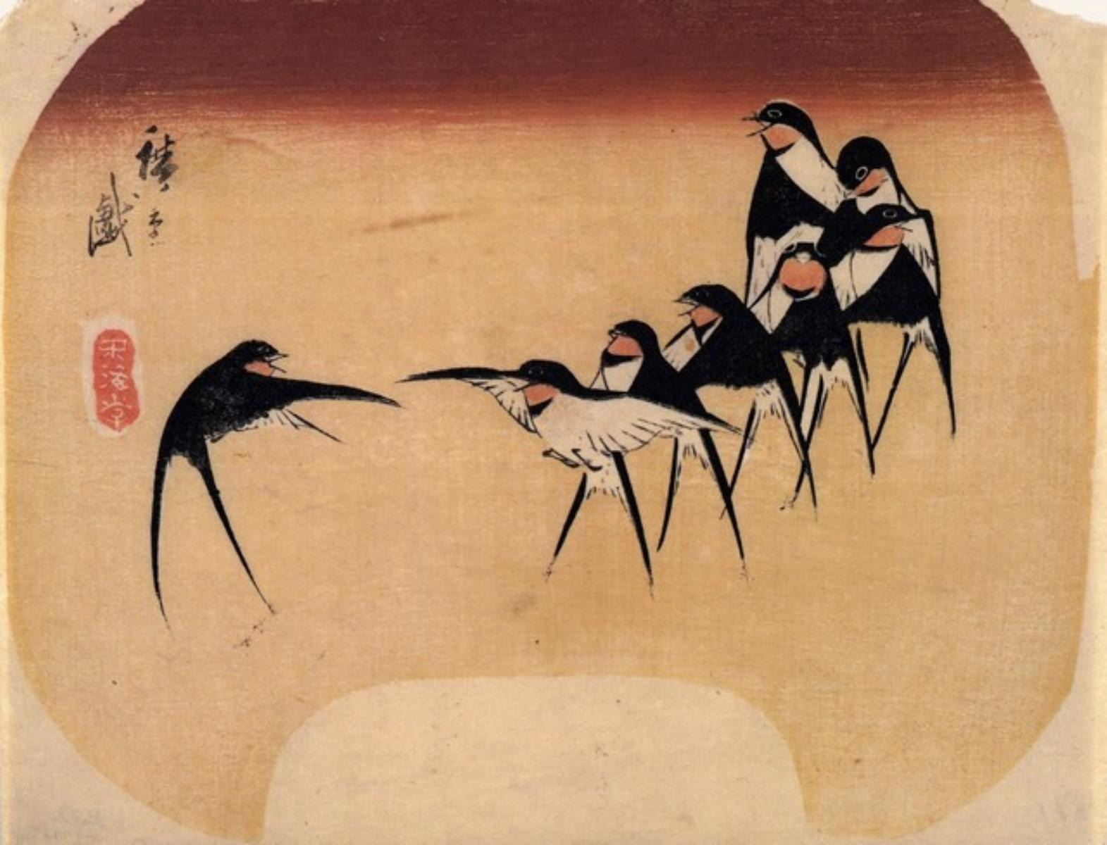 Artist: Utagawa Hiroshige - Title: Dancing Swallows - Medium: Fine Art Giclee on Canvas - Image Size: Approximately 24.5 inches x 32 inches - Unframed on Unstretched Canvas - Biography: (1797 - 12 October 1858) Hiroshige 's print s convey the beauty of Japan and provide insight into the everyday life of its citizens during the Edo period. The appeal of his tender, lyrical landscapes was not restricted to the Japanese audience.Hiroshige 's work had a profound influence on the Impressionists and Post-Impressionists of Europe: Toulouse-Lautrec was fascinated withHiroshige 's daring diagonal compositions and inventive use of perspective, while Van Gogh literally copied two ofHiroshig's prints from the famous series, 100 Famous Views of Edo in oil paint. - The borders may not be even inHiroshig's images. Please refer to the image.