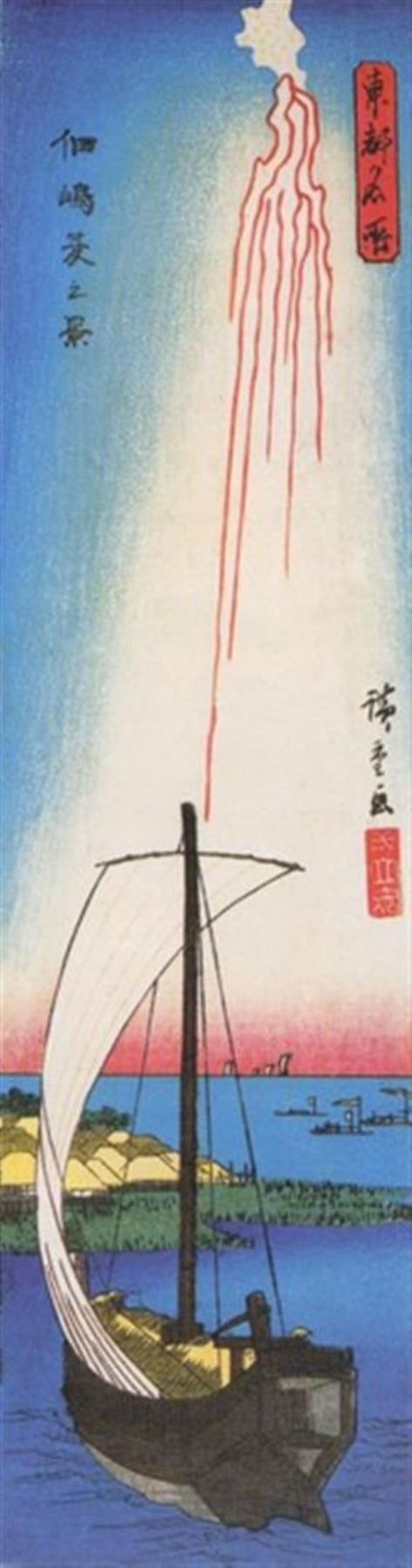 Artist: Utagawa Hiroshige - Title: Fireworks over a Bay - Medium: Fine Art Giclee on Canvas - Image Size: Approximately 32 inches x 8.25 inches - Unframed on Unstretched Canvas - Biography: (1797 - 12 October 1858) Hiroshige 's print s convey the beauty of Japan and provide insight into the everyday life of its citizens during the Edo period. The appeal of his tender, lyrical landscapes was not restricted to the Japanese audience.Hiroshige 's work had a profound influence on the Impressionists and Post-Impressionists of Europe: Toulouse-Lautrec was fascinated withHiroshige 's daring diagonal compositions and inventive use of perspective, while Van Gogh literally copied two ofHiroshig's prints from the famous series, 100 Famous Views of Edo in oil paint. - The borders may not be even inHiroshig's images. Please refer to the image.
