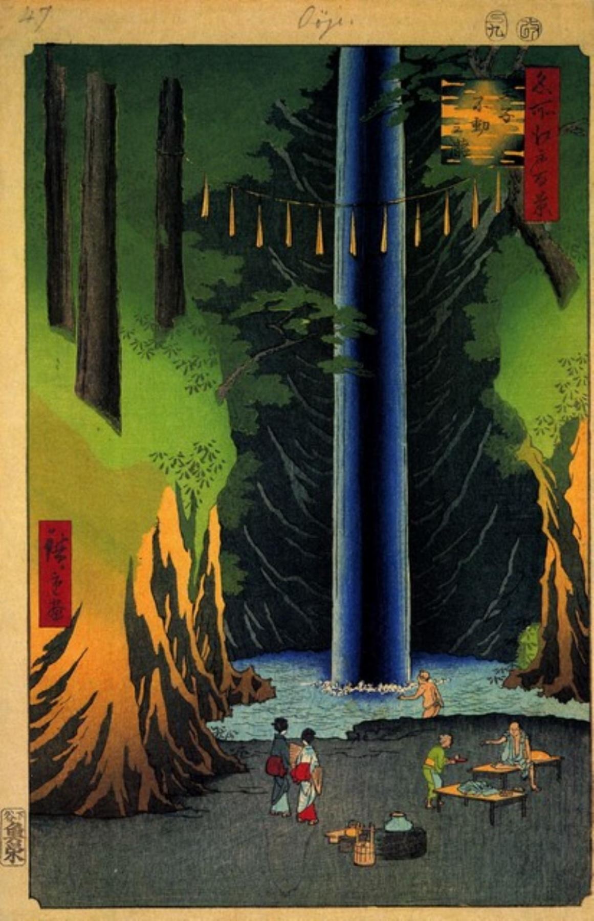 Artist: Utagawa Hiroshige - Title: Fudo Falls - Medium: Fine Art Giclee on Canvas - Image Size: Approximately 20 inches x 12.75 inches - Unframed on Unstretched Canvas - Biography: (1797 - 12 October 1858) Hiroshige 's prints convey the beauty of Japan and provide insight into the everyday life of its citizens during the Edo period. The appeal of his tender, lyrical landscapes was not restricted to the Japanese audience.Hiroshige 's work had a profound influence on the Impressionists and Post-Impressionists of Europe: Toulouse-Lautrec was fascinated withHiroshige 's daring diagonal compositions and inventive use of perspective, while Van Gogh literally copied two ofHiroshig's prints from the famous series, 100 Famous Views of Edo in oil paint. - The borders may not be even inHiroshig's images. Please refer to the image.