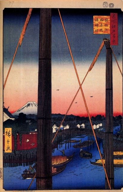 Artist: Utagawa Hiroshige - Title: Inari Bridge and Minato Shrine - Medium: Fine Art Giclee on Canvas - Image Size: Approximately 32 inches x 20.5 inches - Unframed on Unstretched Canvas - Biography: (1797 - 12 October 1858) Hiroshige 's prints convey the beauty of Japan and provide insight into the everyday life of its citizens during the Edo period. The appeal of his tender, lyrical landscapes was not restricted to the Japanese audience.Hiroshige 's work had a profound influence on the Impressionists and Post-Impressionists of Europe: Toulouse-Lautrec was fascinated withHiroshige 's daring diagonal compositions and inventive use of perspective, while Van Gogh literally copied two ofHiroshig's prints from the famous series, 100 Famous Views of Edo in oil paint. - The borders may not be even inHiroshig's images. Please refer to the image.