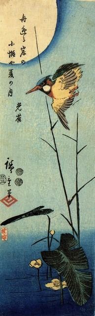 Artist: Utagawa Hiroshige - Title: Kingfisher Over Yellow Water Plant - Medium: Fine Art Giclee on Canvas - Image Size: Approximately 20 inches x 6 inches - Unframed on Unstretched Canvas - Biography: (1797 - 12 October 1858) Hiroshige 's print s convey the beauty of Japan and provide insight into the everyday life of its citizens during the Edo period. The appeal of his tender, lyrical landscapes was not restricted to the Japanese audience.Hiroshige 's work had a profound influence on the Impressionists and Post-Impressionists of Europe: Toulouse-Lautrec was fascinated withHiroshige 's daring diagonal compositions and inventive use of perspective, while Van Gogh literally copied two ofHiroshig's prints from the famous series, 100 Famous Views of Edo in oil paint. - The borders may not be even inHiroshig's images. Please refer to the image.
