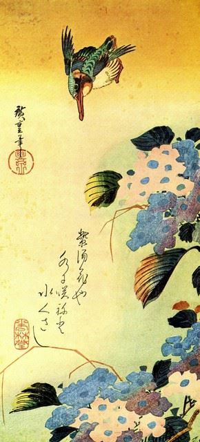 Artist: Utagawa Hiroshige - Title: Kingfisher and Hydrangea - Medium: Fine Art Giclee on Canvas - Image Size: Approximately 32 inches x 14.5 inches - Unframed on Unstretched Canvas - Biography: (1797 - 12 October 1858) Hiroshige 's print s convey the beauty of Japan and provide insight into the everyday life of its citizens during the Edo period. The appeal of his tender, lyrical landscapes was not restricted to the Japanese audience.Hiroshige 's work had a profound influence on the Impressionists and Post-Impressionists of Europe: Toulouse-Lautrec was fascinated withHiroshige 's daring diagonal compositions and inventive use of perspective, while Van Gogh literally copied two ofHiroshig's prints from the famous series, 100 Famous Views of Edo in oil paint. - The borders may not be even inHiroshig's images. Please refer to the image.