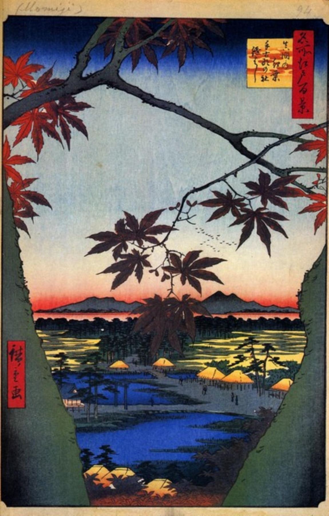 Artist: Utagawa Hiroshige - Title: Maple Trees at Mama - Medium: Fine Art Giclee on Canvas - Image Size: Approximately 32 inches x 20.5 inches - Unframed on Unstretched Canvas - Biography: (1797 - 12 October 1858) Hiroshige 's prints convey the beauty of Japan and provide insight into the everyday life of its citizens during the Edo period. The appeal of his tender, lyrical landscapes was not restricted to the Japanese audience.Hiroshige 's work had a profound influence on the Impressionists and Post-Impressionists of Europe: Toulouse-Lautrec was fascinated withHiroshige 's daring diagonal compositions and inventive use of perspective, while Van Gogh literally copied two ofHiroshig's prints from the famous series, 100 Famous Views of Edo in oil paint. - The borders may not be even inHiroshig's images. Please refer to the image.