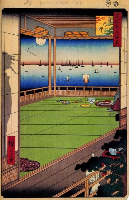Artist: Utagawa Hiroshige - Title: Moon-Viewing Point - Medium: Fine Art Giclee on Canvas - Image Size: Approximately 32 inches x 20.5 inches - Unframed on Unstretched Canvas - Biography: (1797 - 12 October 1858) Hiroshige 's prints convey the beauty of Japan and provide insight into the everyday life of its citizens during the Edo period. The appeal of his tender, lyrical landscapes was not restricted to the Japanese audience.Hiroshige 's work had a profound influence on the Impressionists and Post-Impressionists of Europe: Toulouse-Lautrec was fascinated withHiroshige 's daring diagonal compositions and inventive use of perspective, while Van Gogh literally copied two ofHiroshig's prints from the famous series, 100 Famous Views of Edo in oil paint. - The borders may not be even inHiroshig's images. Please refer to the image.