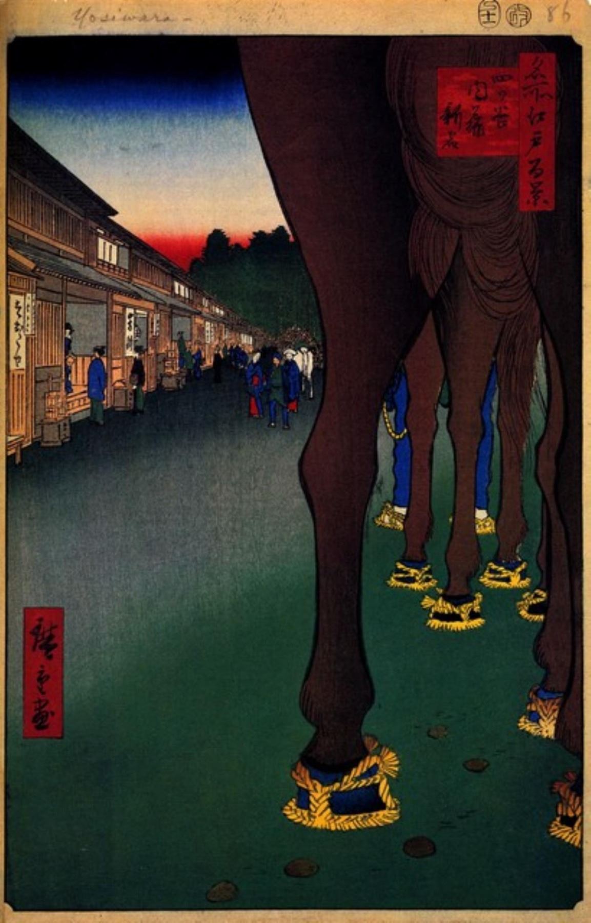 Artist: Utagawa Hiroshige - Title: Naito Shinjuku - Medium: Fine Art Giclee on Canvas - Image Size: Approximately 32 inches x 20.5 inches - Unframed on Unstretched Canvas - Biography: (1797 - 12 October 1858) Hiroshige 's prints convey the beauty of Japan and provide insight into the everyday life of its citizens during the Edo period. The appeal of his tender, lyrical landscapes was not restricted to the Japanese audience.Hiroshige 's work had a profound influence on the Impressionists and Post-Impressionists of Europe: Toulouse-Lautrec was fascinated withHiroshige 's daring diagonal compositions and inventive use of perspective, while Van Gogh literally copied two ofHiroshig's prints from the famous series, 100 Famous Views of Edo in oil paint. - The borders may not be even inHiroshig's images. Please refer to the image.