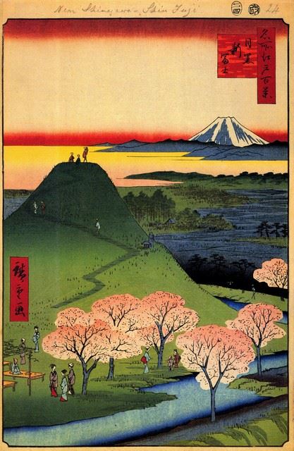 Artist: Utagawa Hiroshige - Title: New Fuji, Mequro - Medium: Fine Art Giclee on Canvas - Image Size: Approximately 32 inches x 20.75 inches - Unframed on Unstretched Canvas - Biography: (1797 - 12 October 1858) Hiroshige 's prints convey the beauty of Japan and provide insight into the everyday life of its citizens during the Edo period. The appeal of his tender, lyrical landscapes was not restricted to the Japanese audience.Hiroshige 's work had a profound influence on the Impressionists and Post-Impressionists of Europe: Toulouse-Lautrec was fascinated withHiroshige 's daring diagonal compositions and inventive use of perspective, while Van Gogh literally copied two ofHiroshig's prints from the famous series, 100 Famous Views of Edo in oil paint. - The borders may not be even inHiroshig's images. Please refer to the image.