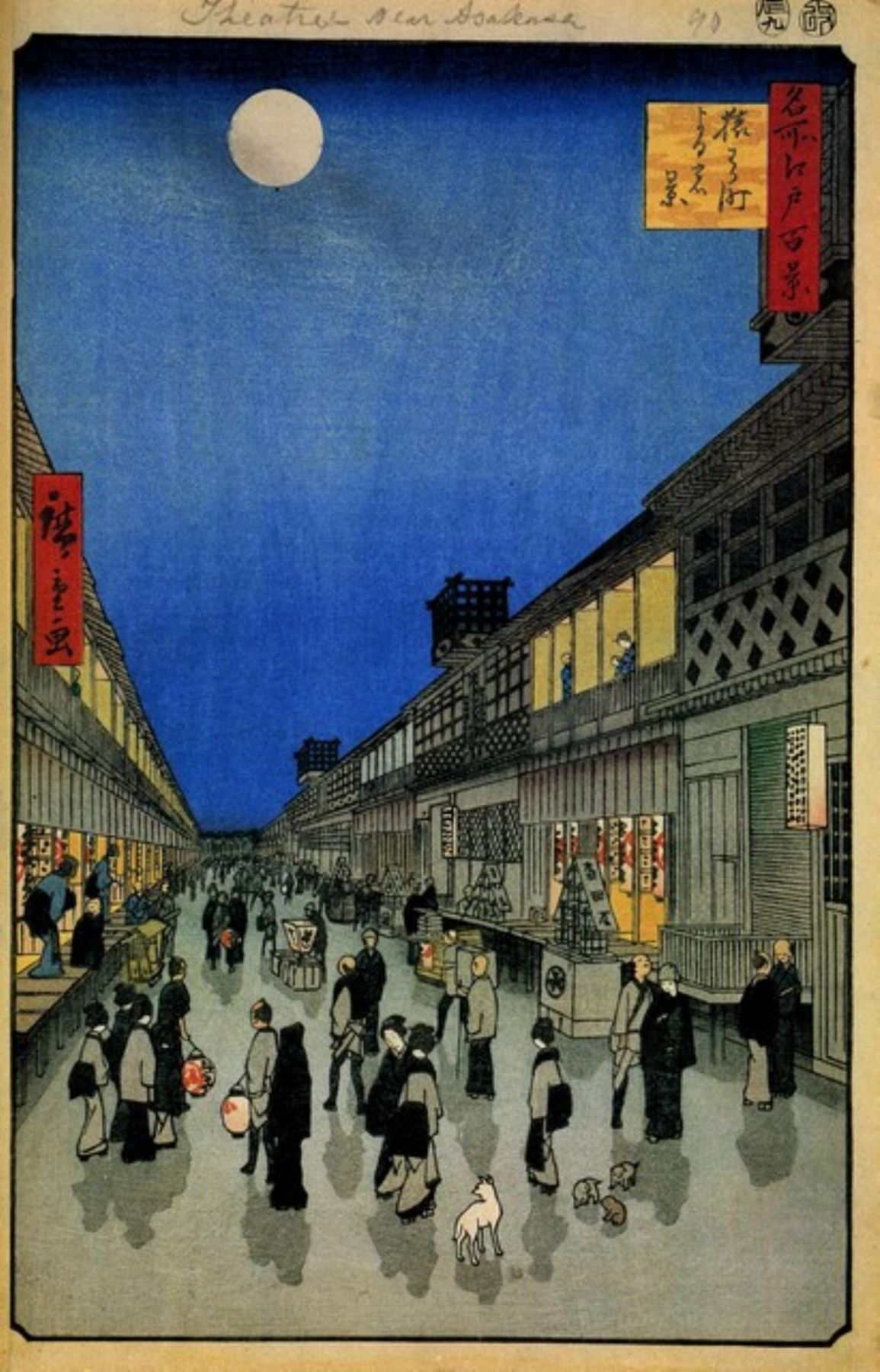 Artist: Utagawa Hiroshige - Title: Night View of Sarukawa-machi - Medium: Fine Art Giclee on Canvas - Image Size: Approximately 32 inches x 20.5 inches - Unframed on Unstretched Canvas - Biography: (1797 - 12 October 1858) Hiroshige 's prints convey the beauty of Japan and provide insight into the everyday life of its citizens during the Edo period. The appeal of his tender, lyrical landscapes was not restricted to the Japanese audience.Hiroshige 's work had a profound influence on the Impressionists and Post-Impressionists of Europe: Toulouse-Lautrec was fascinated withHiroshige 's daring diagonal compositions and inventive use of perspective, while Van Gogh literally copied two ofHiroshig's prints from the famous series, 100 Famous Views of Edo in oil paint. - The borders may not be even inHiroshig's images. Please refer to the image.