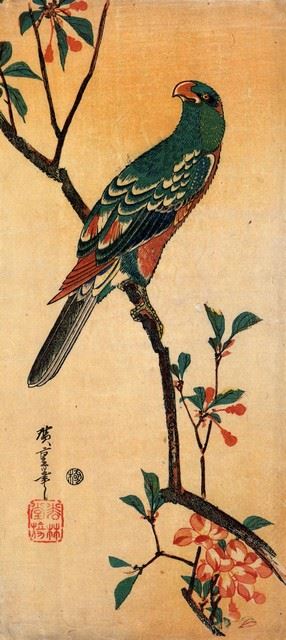 Artist: Utagawa Hiroshige - Title: Parrot on a Blooming Branch - Medium: Fine Art Giclee on Canvas - Image Size: Approximately 32 inches x 14.25 inches - Unframed on Unstretched Canvas - Biography: (1797 - 12 October 1858) Hiroshige 's print s convey the beauty of Japan and provide insight into the everyday life of its citizens during the Edo period. The appeal of his tender, lyrical landscapes was not restricted to the Japanese audience.Hiroshige 's work had a profound influence on the Impressionists and Post-Impressionists of Europe: Toulouse-Lautrec was fascinated withHiroshige 's daring diagonal compositions and inventive use of perspective, while Van Gogh literally copied two ofHiroshig's prints from the famous series, 100 Famous Views of Edo in oil paint. - The borders may not be even inHiroshig's images. Please refer to the image.