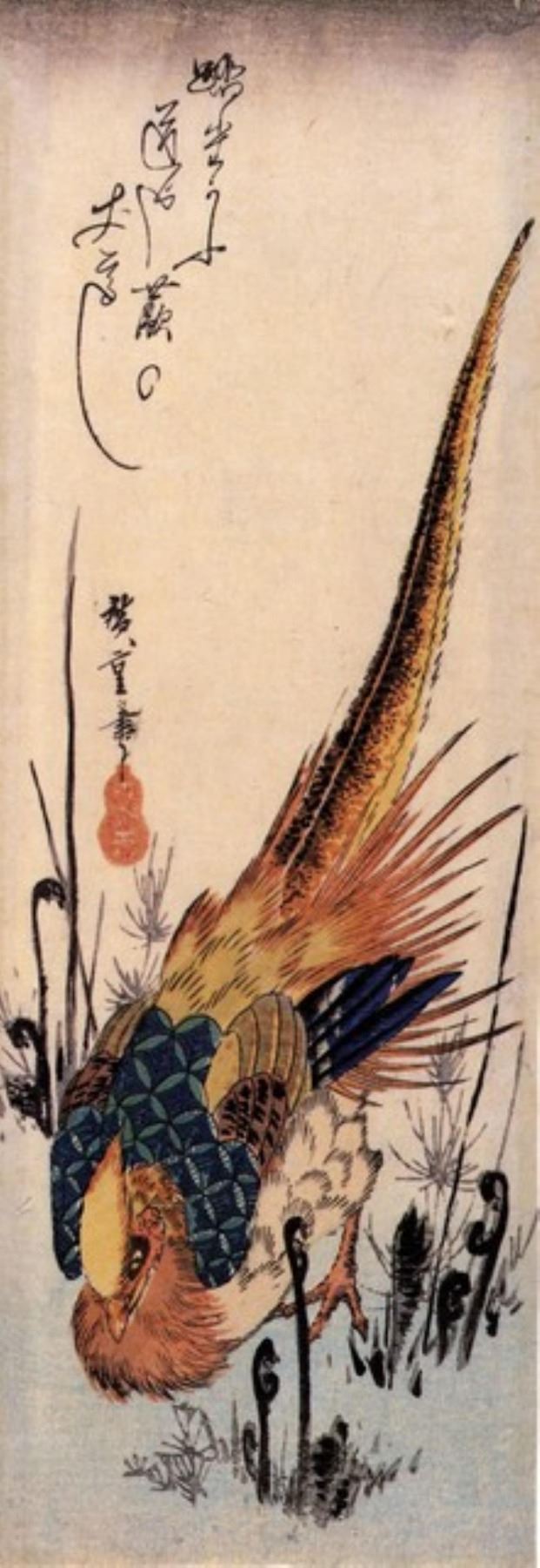Artist: Utagawa Hiroshige - Title: Pheasant and Fern - Medium: Fine Art Giclee on Canvas - Image Size: Approximately 32 inches x 11 inches - Unframed on Unstretched Canvas - Biography: (1797 - 12 October 1858) Hiroshige 's print s convey the beauty of Japan and provide insight into the everyday life of its citizens during the Edo period. The appeal of his tender, lyrical landscapes was not restricted to the Japanese audience.Hiroshige 's work had a profound influence on the Impressionists and Post-Impressionists of Europe: Toulouse-Lautrec was fascinated withHiroshige 's daring diagonal compositions and inventive use of perspective, while Van Gogh literally copied two ofHiroshig's prints from the famous series, 100 Famous Views of Edo in oil paint. - The borders may not be even inHiroshig's images. Please refer to the image.