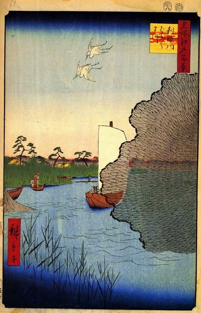 Artist: Utagawa Hiroshige - Title: Scattered Pines, Tone River - Medium: Fine Art Giclee on Canvas - Image Size: Approximately 32 inches x 20.5 inches - Unframed on Unstretched Canvas - Biography: (1797 - 12 October 1858) Hiroshige 's prints convey the beauty of Japan and provide insight into the everyday life of its citizens during the Edo period. The appeal of his tender, lyrical landscapes was not restricted to the Japanese audience.Hiroshige 's work had a profound influence on the Impressionists and Post-Impressionists of Europe: Toulouse-Lautrec was fascinated withHiroshige 's daring diagonal compositions and inventive use of perspective, while Van Gogh literally copied two ofHiroshig's prints from the famous series, 100 Famous Views of Edo in oil paint. - The borders may not be even inHiroshig's images. Please refer to the image.