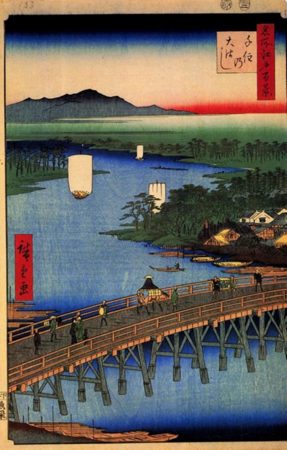 Artist: Utagawa Hiroshige - Title: Senju Great Bridge - Medium: Fine Art Giclee on Canvas - Image Size: Approximately 32 inches x 20.5 inches - Unframed on Unstretched Canvas - Biography: (1797 - 12 October 1858) Hiroshige 's prints convey the beauty of Japan and provide insight into the everyday life of its citizens during the Edo period. The appeal of his tender, lyrical landscapes was not restricted to the Japanese audience.Hiroshige 's work had a profound influence on the Impressionists and Post-Impressionists of Europe: Toulouse-Lautrec was fascinated withHiroshige 's daring diagonal compositions and inventive use of perspective, while Van Gogh literally copied two ofHiroshig's prints from the famous series, 100 Famous Views of Edo in oil paint. - The borders may not be even inHiroshig's images. Please refer to the image.