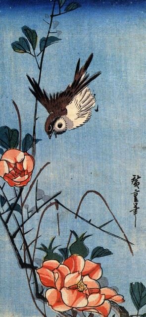 Artist: Utagawa Hiroshige - Title: Sparrows and Wild Rose - Medium: Fine Art Giclee on Canvas - Image Size: Approximately 20 inches x 9.25 inches - Unframed on Unstretched Canvas - Biography: (1797 - 12 October 1858) Hiroshige 's print s convey the beauty of Japan and provide insight into the everyday life of its citizens during the Edo period. The appeal of his tender, lyrical landscapes was not restricted to the Japanese audience.Hiroshige 's work had a profound influence on the Impressionists and Post-Impressionists of Europe: Toulouse-Lautrec was fascinated withHiroshige 's daring diagonal compositions and inventive use of perspective, while Van Gogh literally copied two ofHiroshig's prints from the famous series, 100 Famous Views of Edo in oil paint. - The borders may not be even inHiroshig's images. Please refer to the image.