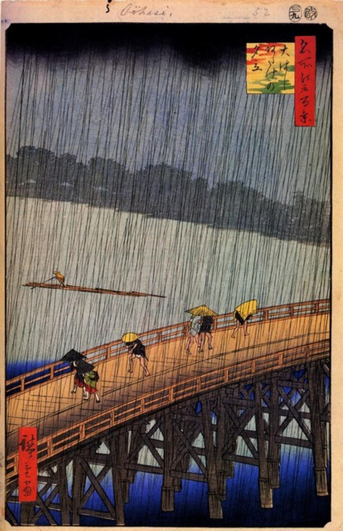 Artist: Utagawa Hiroshige - Title: Sudden Shower over Shin-Ohashi Bridge - Medium: Fine Art Giclee on Canvas - Image Size: Approximately 20 inches x 13 inches - Unframed on Unstretched Canvas - Biography: (1797 - 12 October 1858) Hiroshige 's prints convey the beauty of Japan and provide insight into the everyday life of its citizens during the Edo period. The appeal of his tender, lyrical landscapes was not restricted to the Japanese audience.Hiroshige 's work had a profound influence on the Impressionists and Post-Impressionists of Europe: Toulouse-Lautrec was fascinated withHiroshige 's daring diagonal compositions and inventive use of perspective, while Van Gogh literally copied two ofHiroshig's prints from the famous series, 100 Famous Views of Edo in oil paint. - The borders may not be even inHiroshig's images. Please refer to the image.