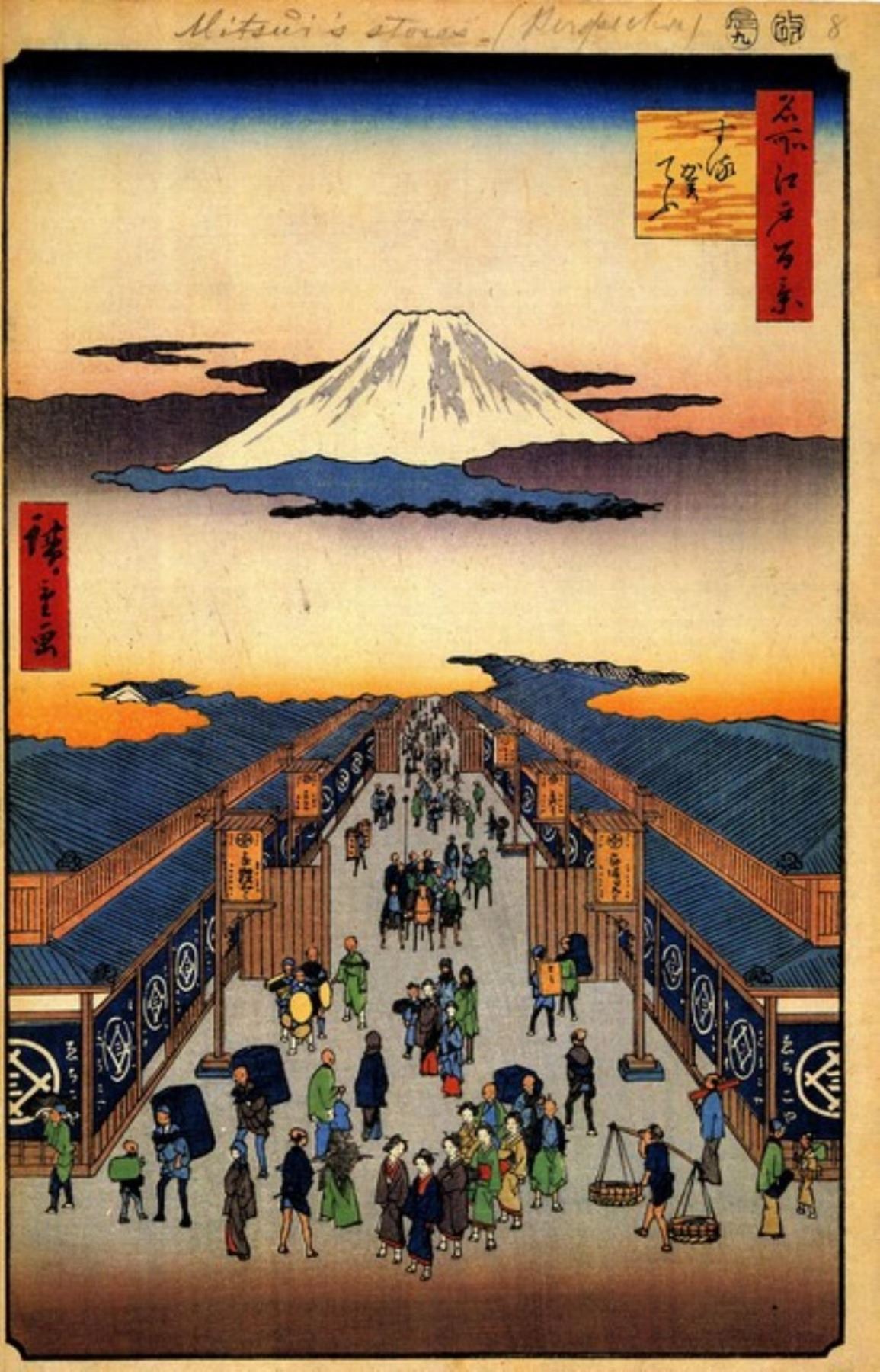 Artist: Utagawa Hiroshige - Title: Suruga-Cho - Medium: Fine Art Giclee on Canvas - Image Size: Approximately 32 inches x 20.5 inches - Unframed on Unstretched Canvas - Biography: (1797 - 12 October 1858) Hiroshige 's prints convey the beauty of Japan and provide insight into the everyday life of its citizens during the Edo period. The appeal of his tender, lyrical landscapes was not restricted to the Japanese audience.Hiroshige 's work had a profound influence on the Impressionists and Post-Impressionists of Europe: Toulouse-Lautrec was fascinated withHiroshige 's daring diagonal compositions and inventive use of perspective, while Van Gogh literally copied two ofHiroshig's prints from the famous series, 100 Famous Views of Edo in oil paint. - The borders may not be even inHiroshig's images. Please refer to the image.