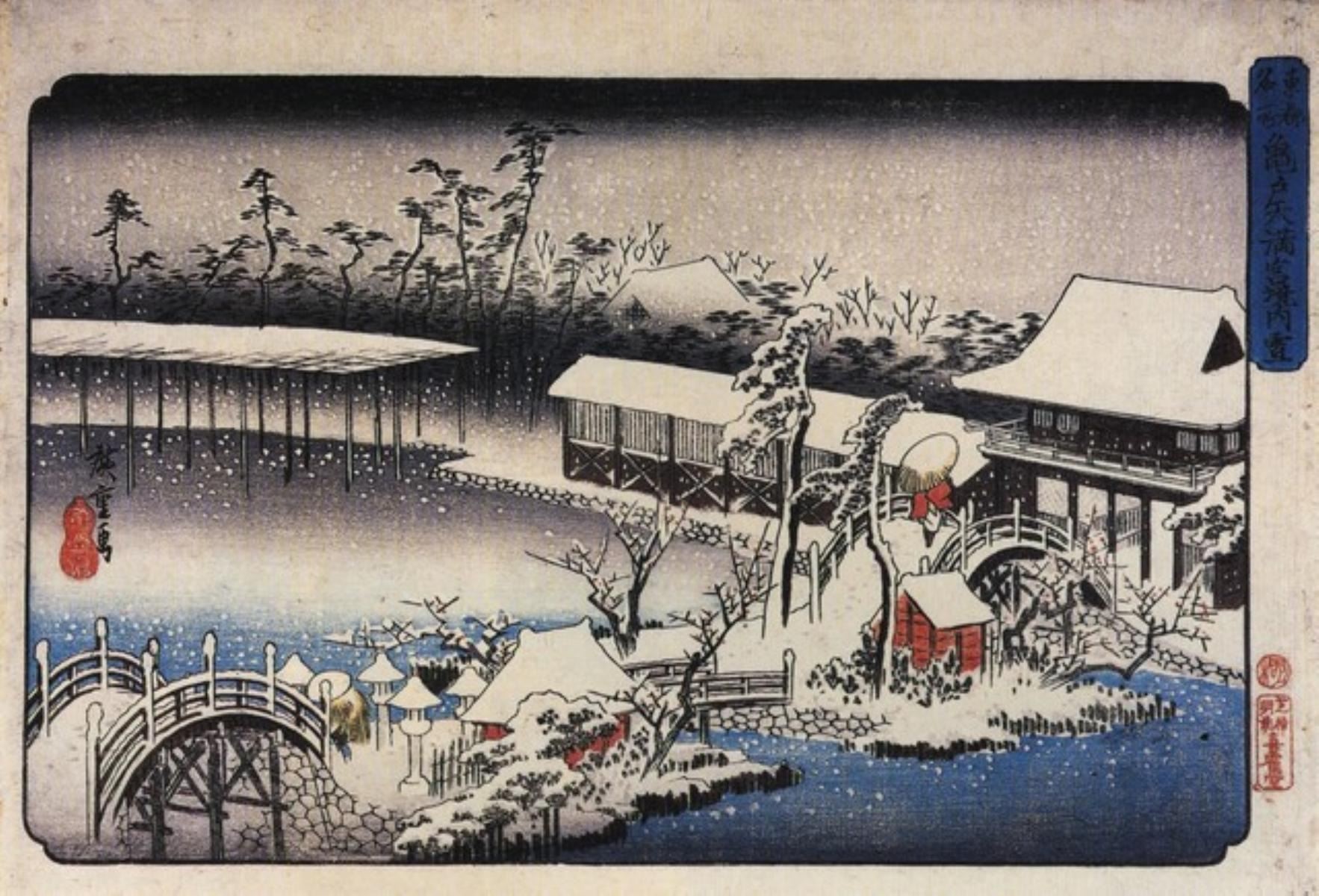 Artist: Utagawa Hiroshige - Title: Temple Complex in the Snow - Medium: Fine Art Giclee on Canvas - Image Size: Approximately 21.75 inches x 32 inches - Unframed on Unstretched Canvas - Biography: (1797 - 12 October 1858) Hiroshige 's print s convey the beauty of Japan and provide insight into the everyday life of its citizens during the Edo period. The appeal of his tender, lyrical landscapes was not restricted to the Japanese audience.Hiroshige 's work had a profound influence on the Impressionists and Post-Impressionists of Europe: Toulouse-Lautrec was fascinated withHiroshige 's daring diagonal compositions and inventive use of perspective, while Van Gogh literally copied two ofHiroshig's prints from the famous series, 100 Famous Views of Edo in oil paint. - The borders may not be even inHiroshig's images. Please refer to the image.