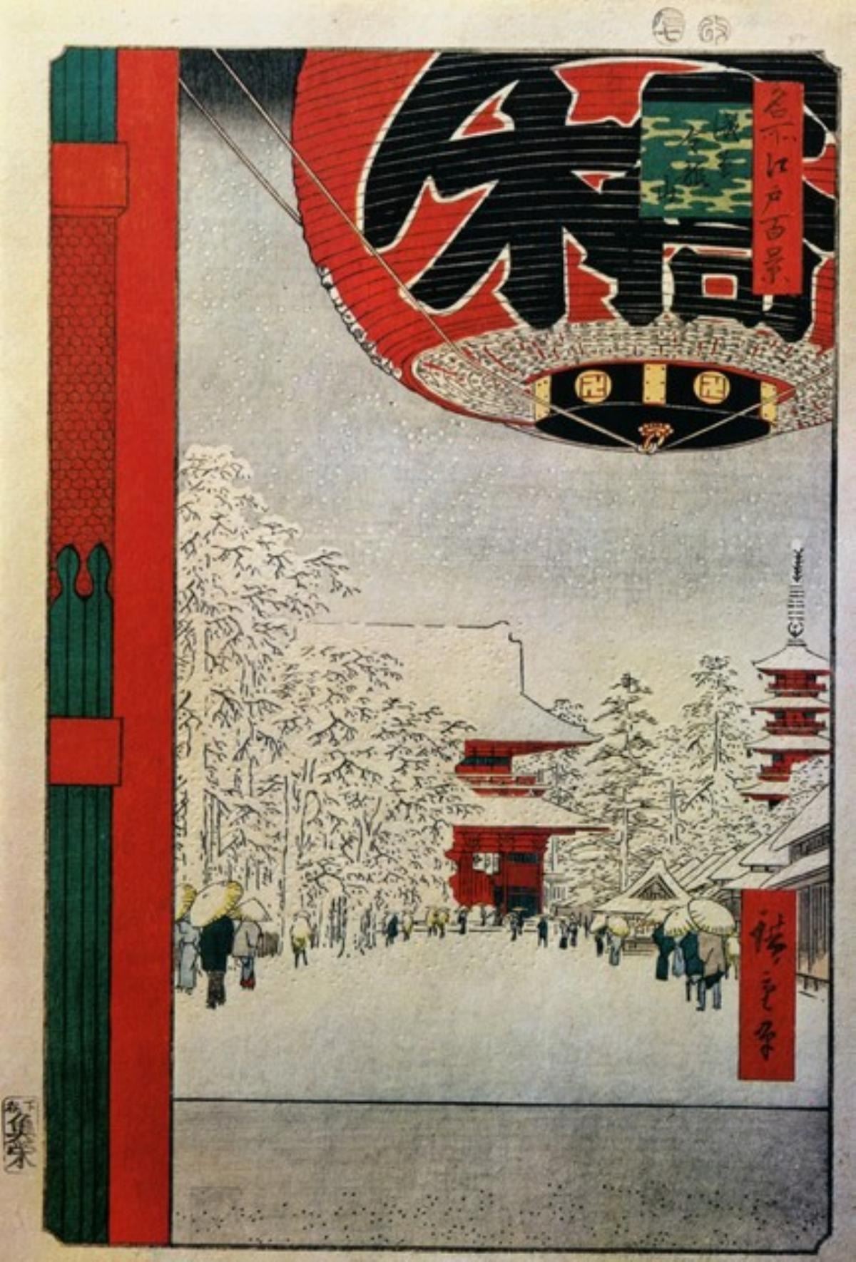 Artist: Utagawa Hiroshige - Title: Temple - Medium: Fine Art Giclee on Canvas - Image Size: Approximately 20 inches x 13.5 inches - Unframed on Unstretched Canvas - Biography: (1797 - 12 October 1858) Hiroshige 's print s convey the beauty of Japan and provide insight into the everyday life of its citizens during the Edo period. The appeal of his tender, lyrical landscapes was not restricted to the Japanese audience.Hiroshige 's work had a profound influence on the Impressionists and Post-Impressionists of Europe: Toulouse-Lautrec was fascinated withHiroshige 's daring diagonal compositions and inventive use of perspective, while Van Gogh literally copied two ofHiroshig's prints from the famous series, 100 Famous Views of Edo in oil paint. - The borders may not be even inHiroshig's images. Please refer to the image.
