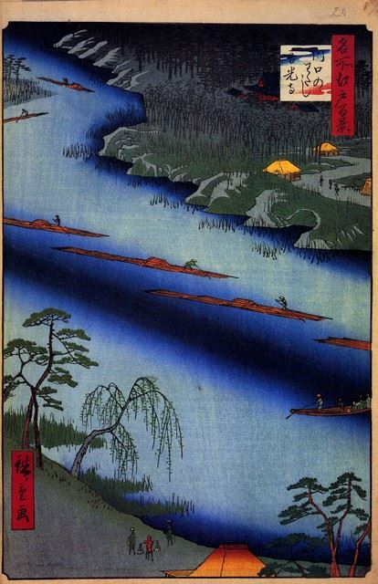 Artist: Utagawa Hiroshige - Title: The Kawaguchi Ferry - Medium: Fine Art Giclee on Canvas - Image Size: Approximately 32 inches x 20.75 inches - Unframed on Unstretched Canvas - Biography: (1797 - 12 October 1858) Hiroshige 's prints convey the beauty of Japan and provide insight into the everyday life of its citizens during the Edo period. The appeal of his tender, lyrical landscapes was not restricted to the Japanese audience.Hiroshige 's work had a profound influence on the Impressionists and Post-Impressionists of Europe: Toulouse-Lautrec was fascinated withHiroshige 's daring diagonal compositions and inventive use of perspective, while Van Gogh literally copied two ofHiroshig's prints from the famous series, 100 Famous Views of Edo in oil paint. - The borders may not be even inHiroshig's images. Please refer to the image.