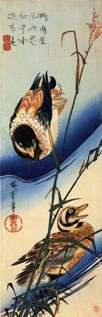 Artist: Utagawa Hiroshige - Title: Two Ducks in Reeds - Medium: Fine Art Giclee on Canvas - Image Size: Approximately 32 inches x 10.25 inches - Unframed on Unstretched Canvas - Biography: (1797 - 12 October 1858) Hiroshige 's print s convey the beauty of Japan and provide insight into the everyday life of its citizens during the Edo period. The appeal of his tender, lyrical landscapes was not restricted to the Japanese audience.Hiroshige 's work had a profound influence on the Impressionists and Post-Impressionists of Europe: Toulouse-Lautrec was fascinated withHiroshige 's daring diagonal compositions and inventive use of perspective, while Van Gogh literally copied two ofHiroshig's prints from the famous series, 100 Famous Views of Edo in oil paint. - The borders may not be even inHiroshig's images. Please refer to the image.