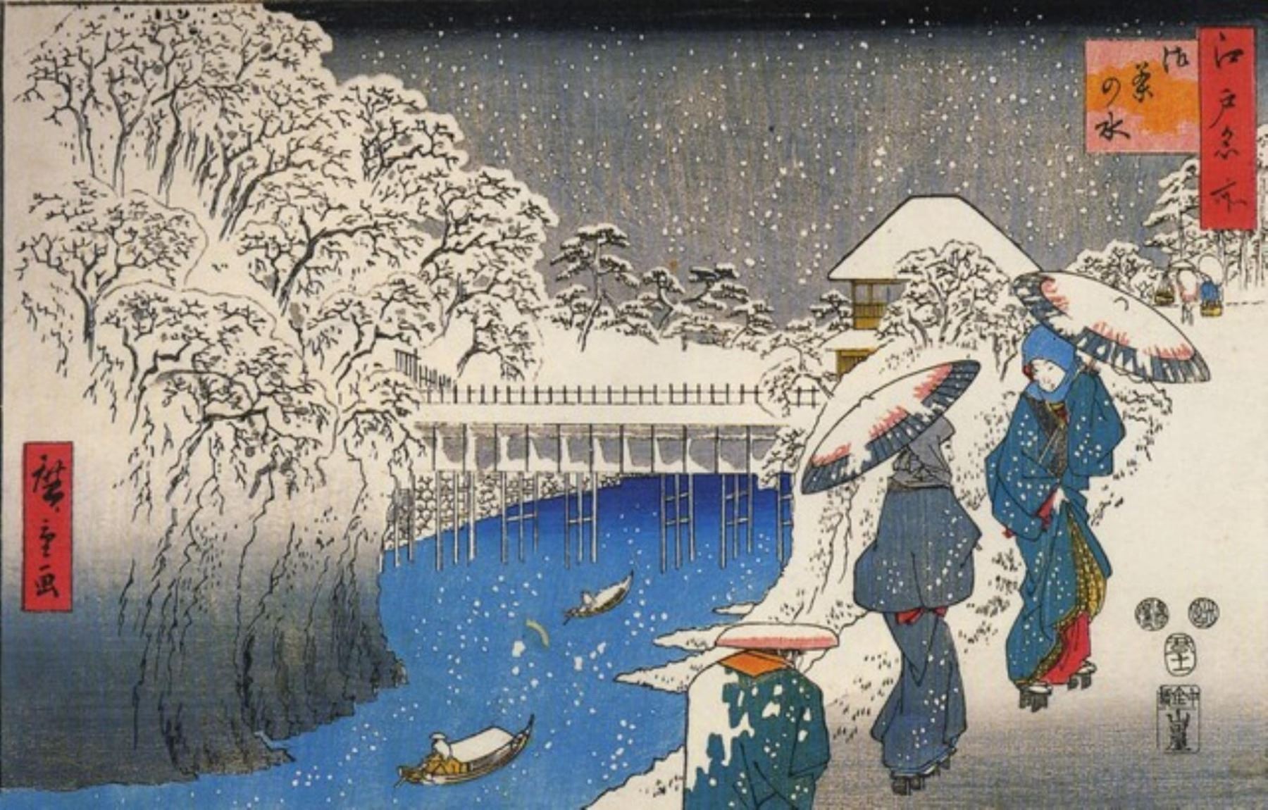 Artist: Utagawa Hiroshige - Title: Two Ladies Conversing in the Snow - Medium: Fine Art Giclee on Canvas - Image Size: Approximately 12.75 inches x 20 inches - Unframed on Unstretched Canvas - Biography: (1797 - 12 October 1858) Hiroshige 's print s convey the beauty of Japan and provide insight into the everyday life of its citizens during the Edo period. The appeal of his tender, lyrical landscapes was not restricted to the Japanese audience.Hiroshige 's work had a profound influence on the Impressionists and Post-Impressionists of Europe: Toulouse-Lautrec was fascinated withHiroshige 's daring diagonal compositions and inventive use of perspective, while Van Gogh literally copied two ofHiroshig's prints from the famous series, 100 Famous Views of Edo in oil paint. - The borders may not be even inHiroshig's images. Please refer to the image.