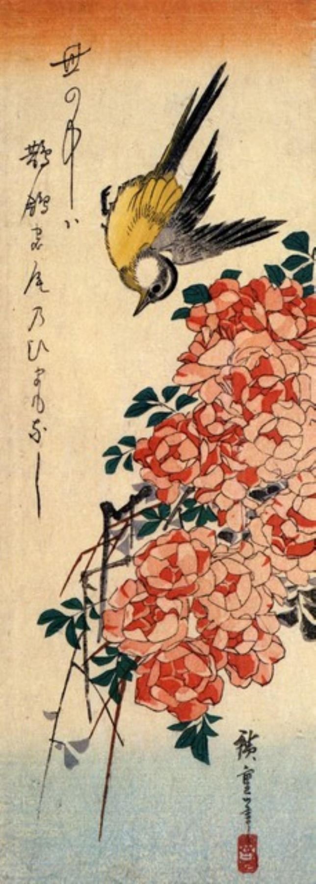 Artist: Utagawa Hiroshige - Title: Wagtail and Roses - Medium: Fine Art Giclee on Canvas - Image Size: Approximately 32 inches x 11.25 inches - Unframed on Unstretched Canvas - Biography: (1797 - 12 October 1858) Hiroshige 's print s convey the beauty of Japan and provide insight into the everyday life of its citizens during the Edo period. The appeal of his tender, lyrical landscapes was not restricted to the Japanese audience.Hiroshige 's work had a profound influence on the Impressionists and Post-Impressionists of Europe: Toulouse-Lautrec was fascinated withHiroshige 's daring diagonal compositions and inventive use of perspective, while Van Gogh literally copied two ofHiroshig's prints from the famous series, 100 Famous Views of Edo in oil paint. - The borders may not be even inHiroshig's images. Please refer to the image.