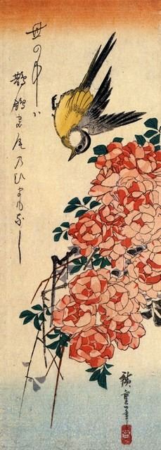 Artist: Utagawa Hiroshige - Title: Wagtail and Roses - Medium: Fine Art Giclee on Canvas - Image Size: Approximately 32 inches x 11.25 inches - Unframed on Unstretched Canvas - Biography: (1797 - 12 October 1858) Hiroshige 's print s convey the beauty of Japan and provide insight into the everyday life of its citizens during the Edo period. The appeal of his tender, lyrical landscapes was not restricted to the Japanese audience.Hiroshige 's work had a profound influence on the Impressionists and Post-Impressionists of Europe: Toulouse-Lautrec was fascinated withHiroshige 's daring diagonal compositions and inventive use of perspective, while Van Gogh literally copied two ofHiroshig's prints from the famous series, 100 Famous Views of Edo in oil paint. - The borders may not be even inHiroshig's images. Please refer to the image.