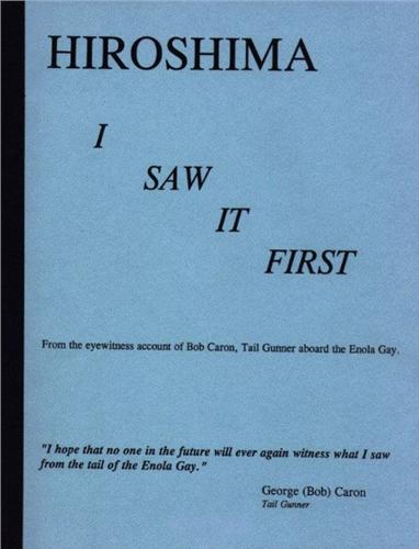 Hiroshima I Saw it First. First-hand account by the tailgunner on the Enola Gay, George (Bob) Caron. In bound booklet, 39 pp., paper wrappers, the first-person story: from his early days in the Army until after the bombing mission that ended the war. Prepared for Oral History Program at U.S. Air Force Academy. Signed at top of first page. Excellent.