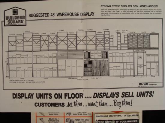 These promotional store displays were designed for Hirsch Tools. They come directly from the personal portfolio of the graphic artist who designed them. They were distributed to store managers, and were never offered to the public. Featured is an 11 x 14 inch display for a special tool-holder offer, complete with tear-off coupons, dating from 1987. There is an 8 1/2 x 11 inch page and booklet of Hirsch and Builders Square storage ideas. Then there is an 11 x 17 poster for a novelty item called the "Executive Tension Reliever," full of humorous illustrations. All items are in very good condition.