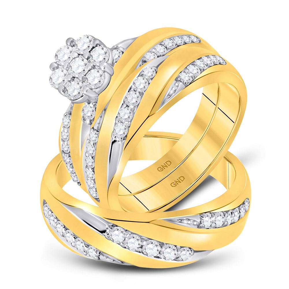 REF-95K5R - SKU: GD111896 ---- His & Hers Diamond Cluster Matching Bridal Wedding Ring Band Set 1.00 Cttw 10kt Yellow Gold