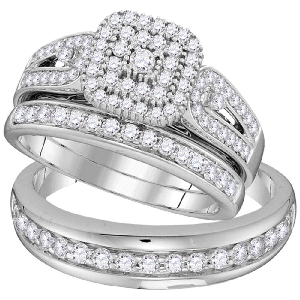 REF-82R7K - SKU: GD109856 ---- His & Hers Diamond Cluster Matching Bridal Wedding Ring Band Set 1-1/5 Cttw 10kt White Gold