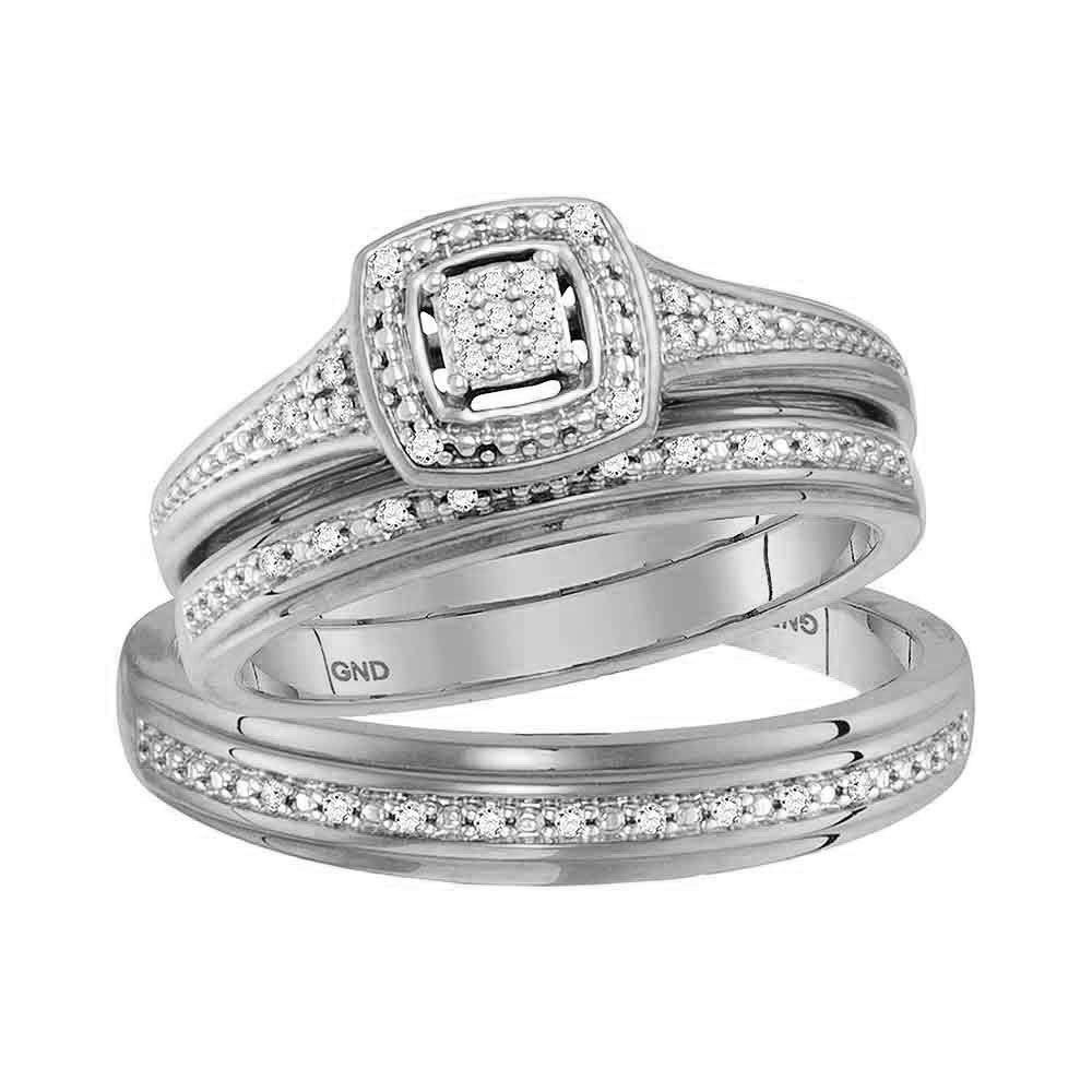 REF-41A8V - SKU: GD117754 ---- His & Hers Diamond Cluster Matching Bridal Wedding Ring Band Set 1/10 Cttw 10kt White Gold