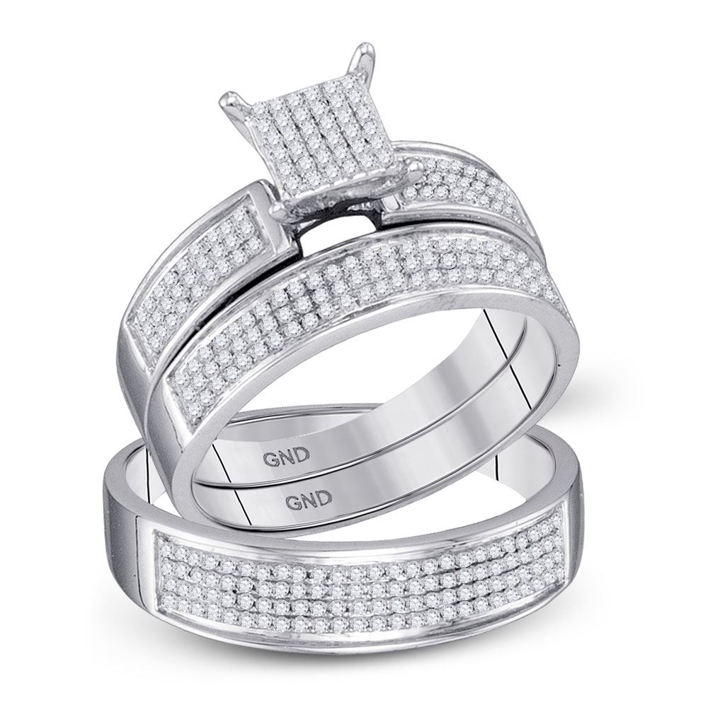 REF-54Y5X - SKU: GD67450 ---- His & Hers Diamond Cluster Matching Bridal Wedding Ring Band Set 1/2 Cttw 10kt White Gold