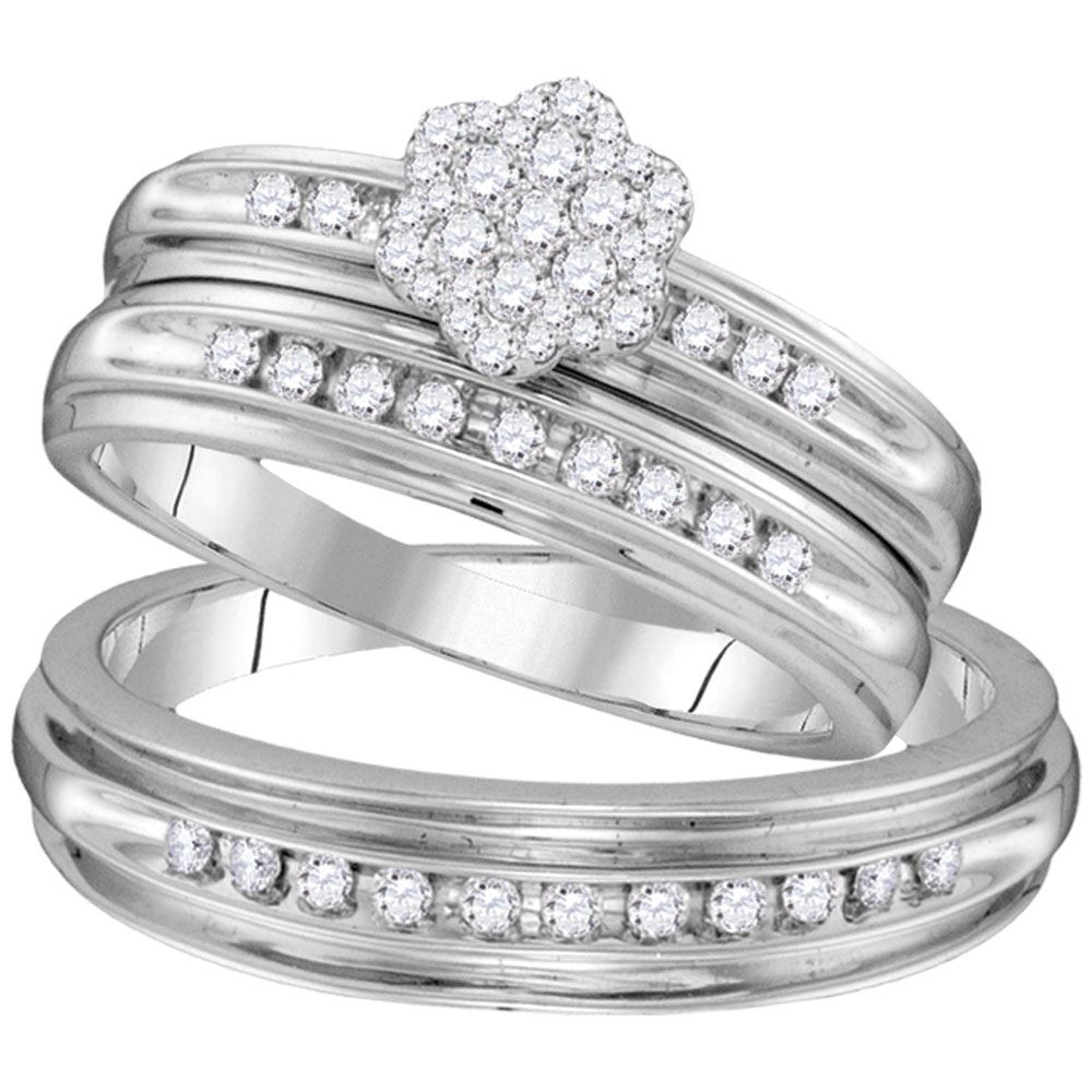 REF-61Y8X - SKU: GD109934 ---- His & Hers Diamond Cluster Matching Bridal Wedding Ring Band Set 1/2 Cttw 10kt White Gold