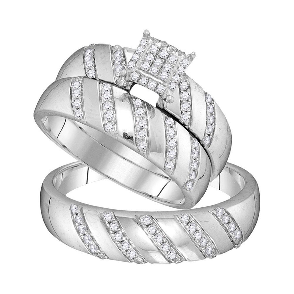 REF-44R5K - SKU: GD104099 ---- His & Hers Diamond Cluster Matching Bridal Wedding Ring Band Set 1/2 Cttw 10kt White Gold