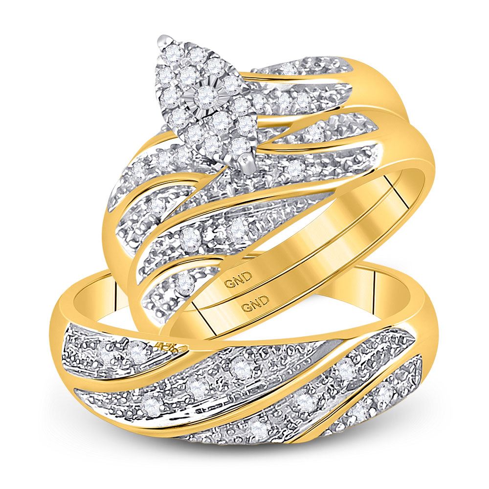 REF-44A5V - SKU: GD97990 ---- His & Hers Diamond Cluster Matching Bridal Wedding Ring Band Set 1/3 Cttw 10kt Two-tone Gold