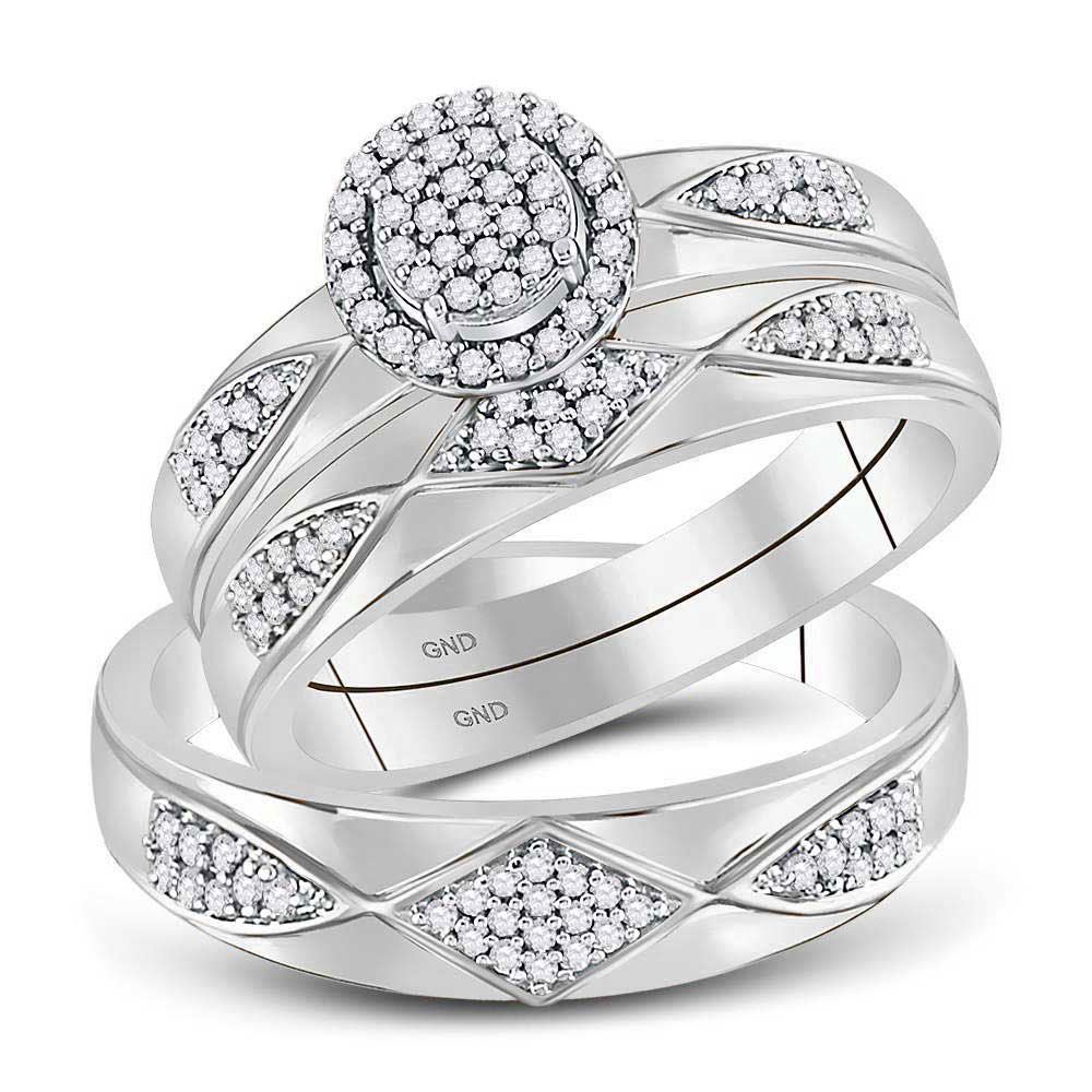 REF-50Y9X - SKU: GD108205 ---- His & Hers Diamond Cluster Matching Bridal Wedding Ring Band Set 1/3 Cttw 10kt White Gold
