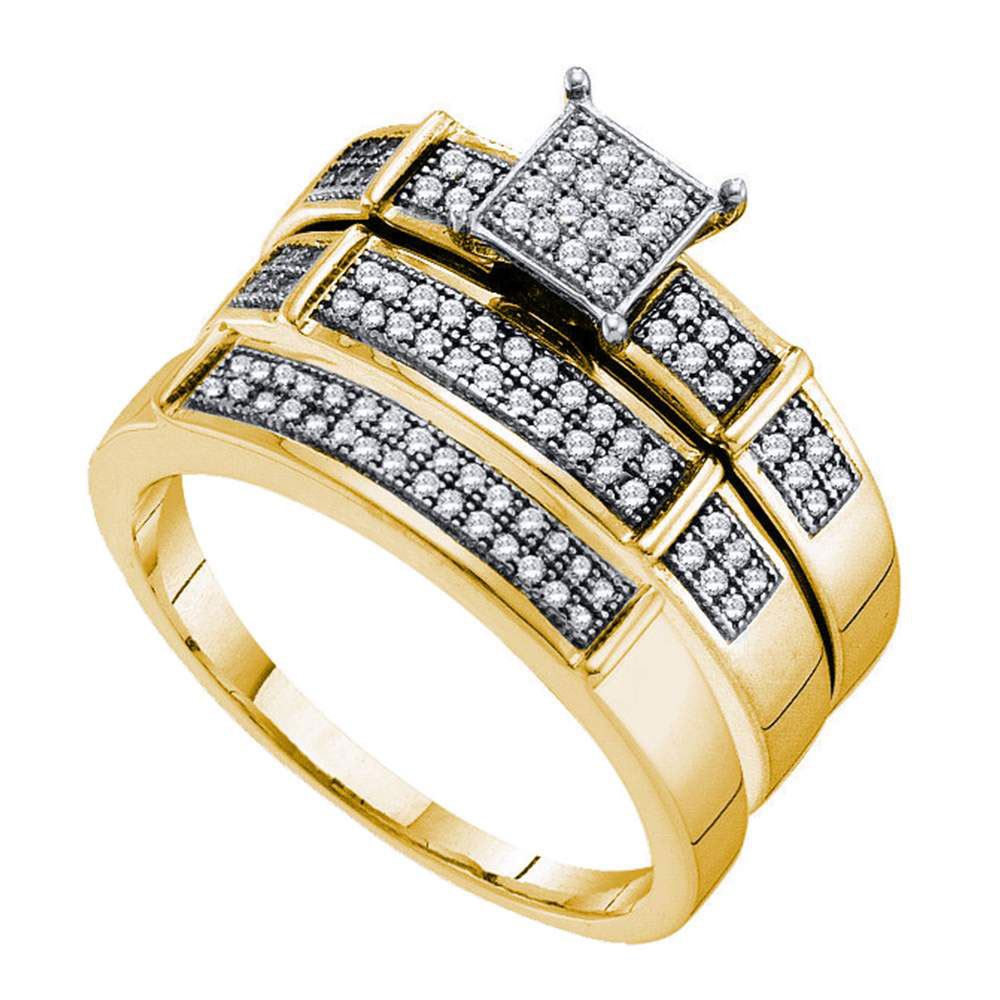 REF-50N9F - SKU: GD56116 ---- His & Hers Diamond Cluster Matching Bridal Wedding Ring Band Set 1/3 Cttw 10kt Yellow Gold